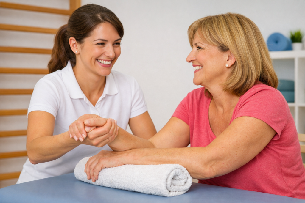 „A Gyógytornászom.hu szakembere már néhány alkalom után jelentősen csökkentette a fájdalmamat, és teljesen visszaadta a csuklóm terhelhetőségét.” – K. Anna (38)